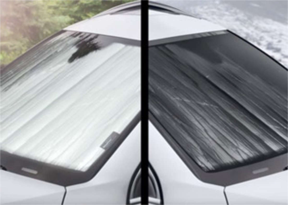 2in1 - Kühlt und wärmt: Reflektiert im Sommer die Hitze, im Winter schützt der Sonnenschutz vor Frost.